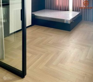 Lắp đặt sàn gỗ chính xác, từng tấm gỗ được ghép khít vào nhau, tạo ra mặt sàn hoàn hảo, không có khe hở.