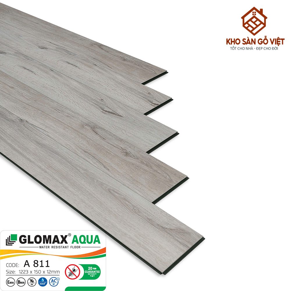 Sàn gỗ Glomax Aqua 12mm A811 là lựa chọn hàng đầu dành cho những ai yêu thích phong cách hiện đại và tinh giản. Với tông màu xám tro nhẹ, vân gỗ tự nhiên chân thật và độ dày tiêu chuẩn 12mm, sản phẩm mang lại cảm giác thanh lịch, sạch sẽ và cực kỳ dễ phối với nhiều phong cách nội thất khác nhau. Đây là dòng sàn công nghiệp cao cấp được Kho Sàn Gỗ Việt nhập khẩu và phân phối chính hãng, nổi bật với khả năng chống nước, chống ẩm tốt và độ bền vượt trội theo thời gian.