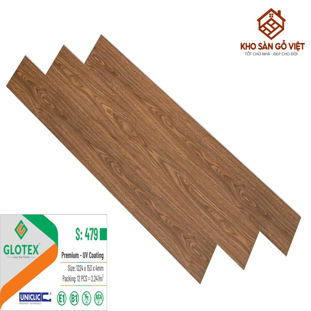 Sàn Nhựa Glotex 4mm S479 mang đến cảm giác sang trọng và ấm cúng với tone màu nâu gỗ sồi đậm, vân gỗ nổi rõ nét, phù hợp cho không gian nội thất cổ điển và hiện đại. Sản phẩm thuộc dòng sàn nhựa hèm khóa cao cấp, được sản xuất theo công nghệ châu Âu và nhập khẩu chính hãng bởi Kho Sàn Gỗ Việt, đảm bảo tiêu chuẩn chất lượng quốc tế, độ bền cao, khả năng chịu nước và chống mài mòn vượt trội.