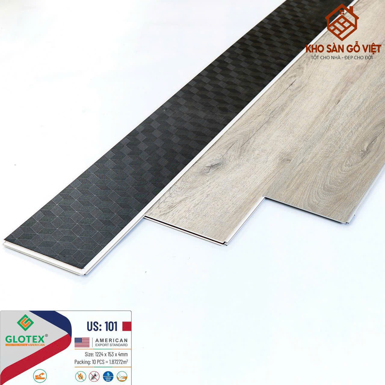 Glotex US101 là mẫu sàn nhựa hèm khóa cao cấp, nổi bật với thiết kế vân gỗ tự nhiên sang trọng cùng lớp đế cao su tích hợp giúp giảm tiếng ồn, chống ẩm mốc và tạo cảm giác êm chân khi di chuyển. Nhờ cấu tạo hèm khóa thông minh, sản phẩm dễ dàng lắp đặt mà không cần keo, tiết kiệm chi phí và thời gian thi công. Đặc biệt, US101 có khả năng chống nước tuyệt đối, không cong vênh, không mối mọt, phù hợp cho cả nhà ở lẫn công trình thương mại.