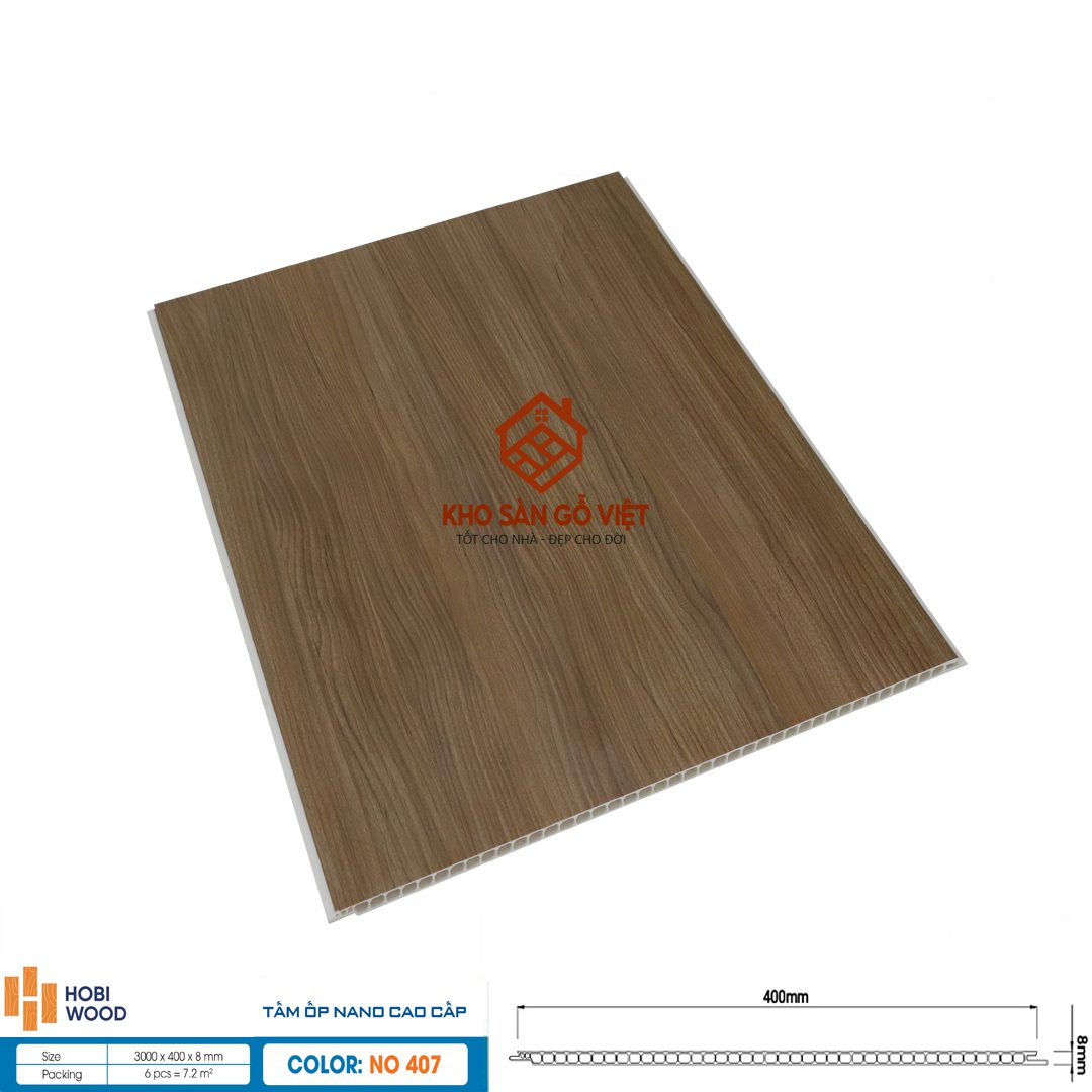 Tấm ốp Nano Hobi Wood NO407 là sản phẩm cao cấp từ tập đoàn Wilson, hiện được Kho Sàn Gỗ Việt phân phối và thi công chính hãng. Với thiết kế vân gỗ tự nhiên tinh tế và màu sắc hiện đại, NO407 là lựa chọn lý tưởng để nâng cấp không gian sống của bạn, mang lại vẻ đẹp sang trọng, bền vững.